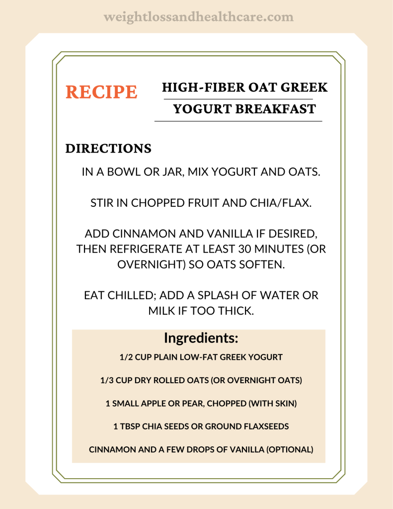 High-Fiber Oat Greek Yogurt Breakfast January 6, 2026January 3, 2026 by Weightloss & Healthcare "Share With Friends" "Share With Friends"